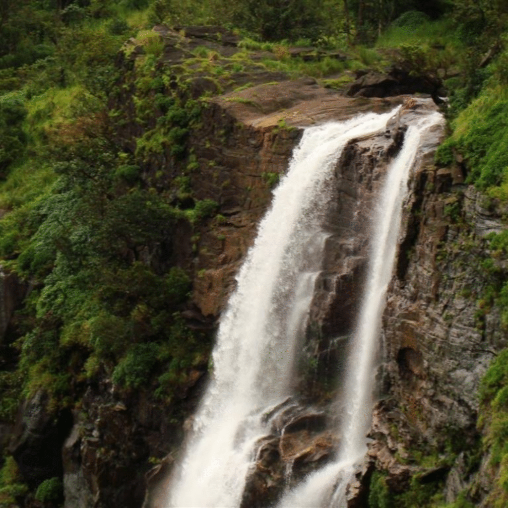 Stunning 200 ft waterfall nestled in Charmadi Ghat’s lush greenery.